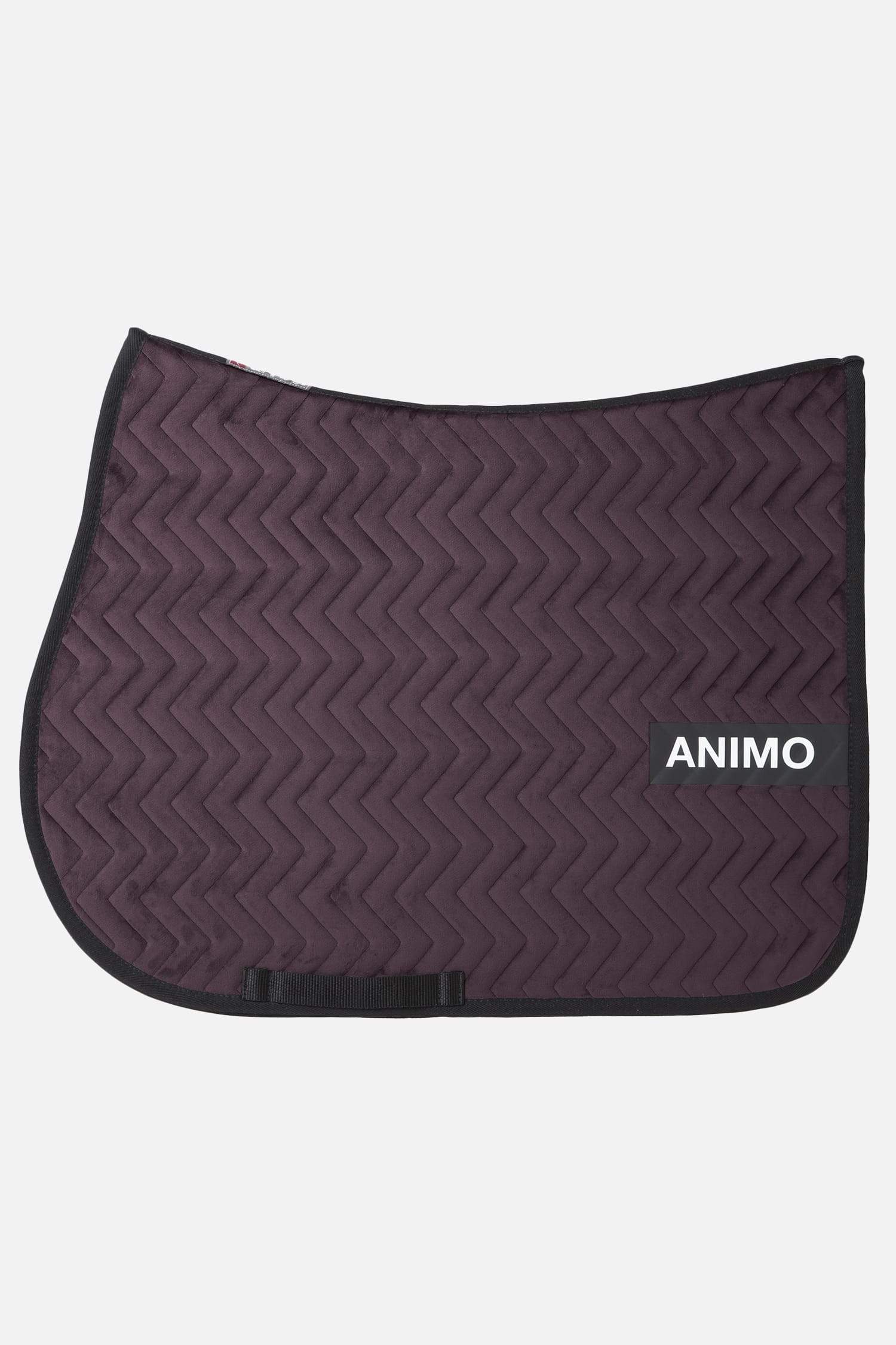 Jumping refined velvet saddle pad with elegant geometric quilt. Black border and thermoadhesive black band with white Animo logo on the left side. The part in contact with the skin has not undergone chemical coloring treatments and this minimizes the possibility of irritation in the presence of heavy sweating. The interior is in technical material capable of absorbing shocks and quickly transferring sweat to the outside. This product can maintain its characteristics and dimensions even after many uses and washes. Paired with CELOZ fly veil. Sportive design. FABRIC VELVET 100% Polyester
