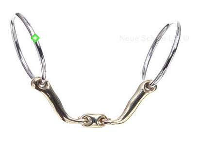The Neue Schule Verbindend 12mm Loose Ring Bit is legal for use dressage competition. Gently shaped with a lozenge center, the mouthpiece helps create a channel for the tongue, which encourages the horse to soften and relax through the jaw, and which normally helps stop tongue evasions. The Verbindend greatly emphasizes rein aids and may assist in establishing a lighter, softer way of going. It has a 12mm Salox® mouth and 70mm stainless steel rings. Neue Schule bits offer high performance and superior comfort for all horses in any discipline and at every level. Created for enlightened riders, all the inspired bit designs feature mouthpieces made of Salox® Gold, a high copper alloy specifically formulated to rapidly reach and maintain the temperature of a horse’s mouth, encouraging softness and relaxed acceptance. This attractive metal has anti-tarnishing properties to maintain its luxurious look. Driven by the needs of the horse and rider, the “new school” bit design philosophy involves the creation of ergonomic mouthpieces that are engineered using the latest CAD technologies for exceptional comfort and effective communication.
