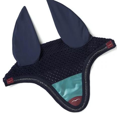 The fly bonnet Calzer by Animo from the spring/summer collection 2022 impresses with color, details and function. This fly bonnet is a high quality product made of 100 % cotton. This fabric is soft, elastic and promises a comfortable feel for the horse, especially on the sensitive ears. In addition, cotton is very breathable, which is further enhanced by the airy crocheted fabric and allows the air to circulate optimally. The ears on the fly bonnet are made of a closed and elastic material. A red Animo logo is attached to the right and left under the ears, as well as in the center front at the bottom edge of the fly bonnet. The eye-catchers are the vivid and modern color on the fly bonnet, but the additional highlight is the rhinestone band with which the fly bonnet is edged and makes it shine.