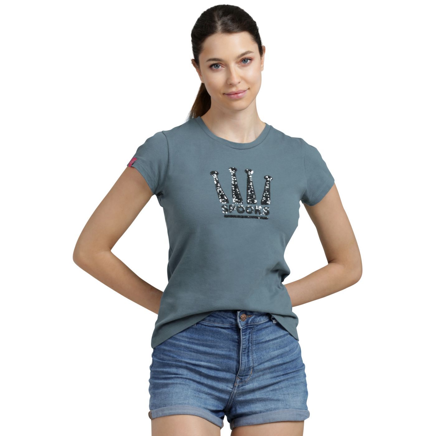The Crown Sequin Shirt - a noble T-shirt with pleasant wearing comfort. The light fabric of the fitted shirt is pleasant and soft on the skin. The T-shirt has a sparkling SPOOKS crown made of sequins on the front.