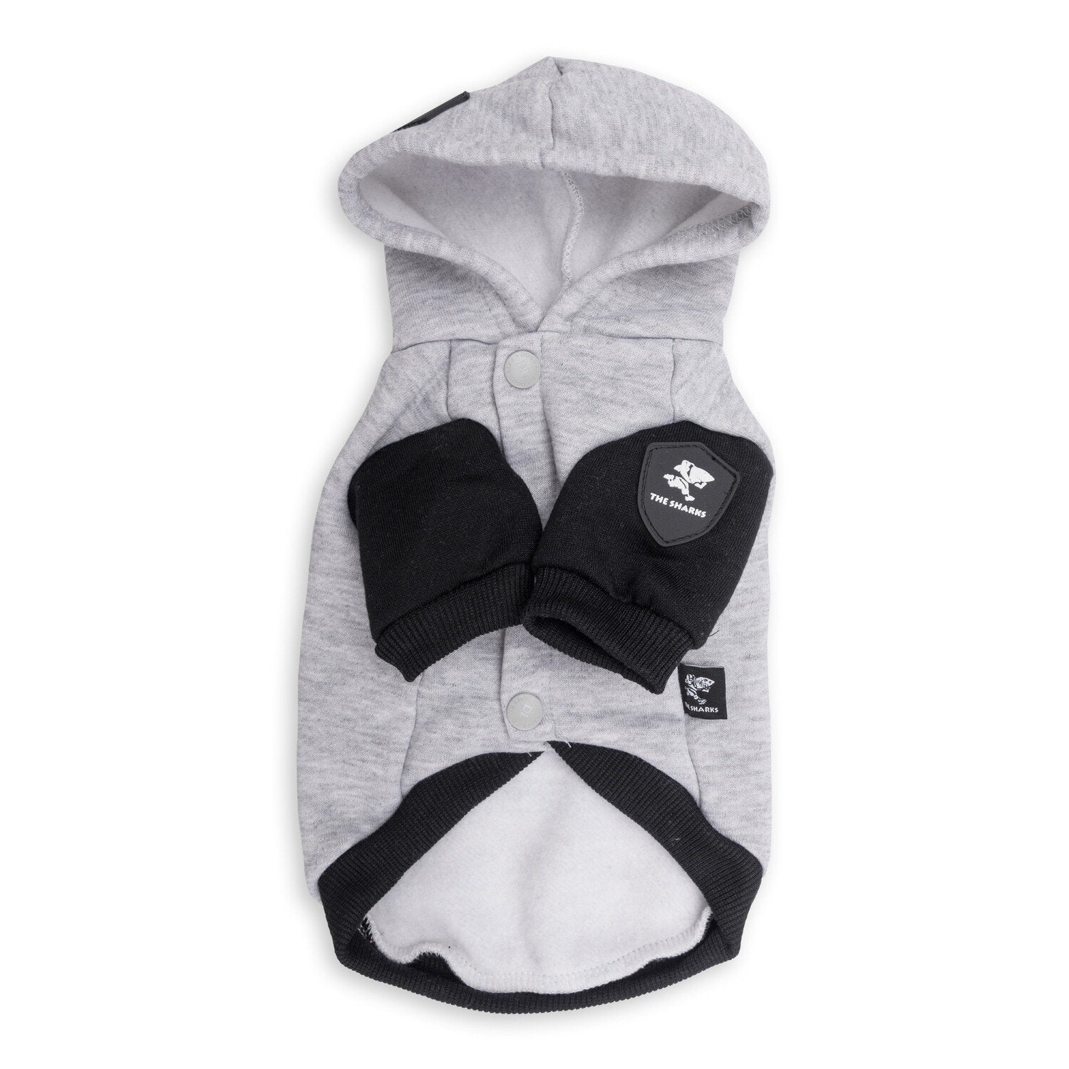 Support your teams and show your loyalty and passion with your brand-new Sharks Rugby Hoodie. This is exclusively designed in South Africa with the passionate doggo fans in mind. It is perfect for a passionate fan, where you can wear it for a game night or for any occasion. If you’re a fan of rugby, be sure to show your love off loud and proud with this striking Sharks rugby winter hoodie for doggos this season! Feel amazing in these winter heavy weight brushed fleece sporty hoodie. It features the Sharks logo screenprint, and a trademark Sharks PVC badge on the hood just adds to the overall authenticity of the piece. With two rows of press studs design and the comfy stretch, these stylish winter hoodies are designed for doggoes to be able to be active in or lounge in everyday.