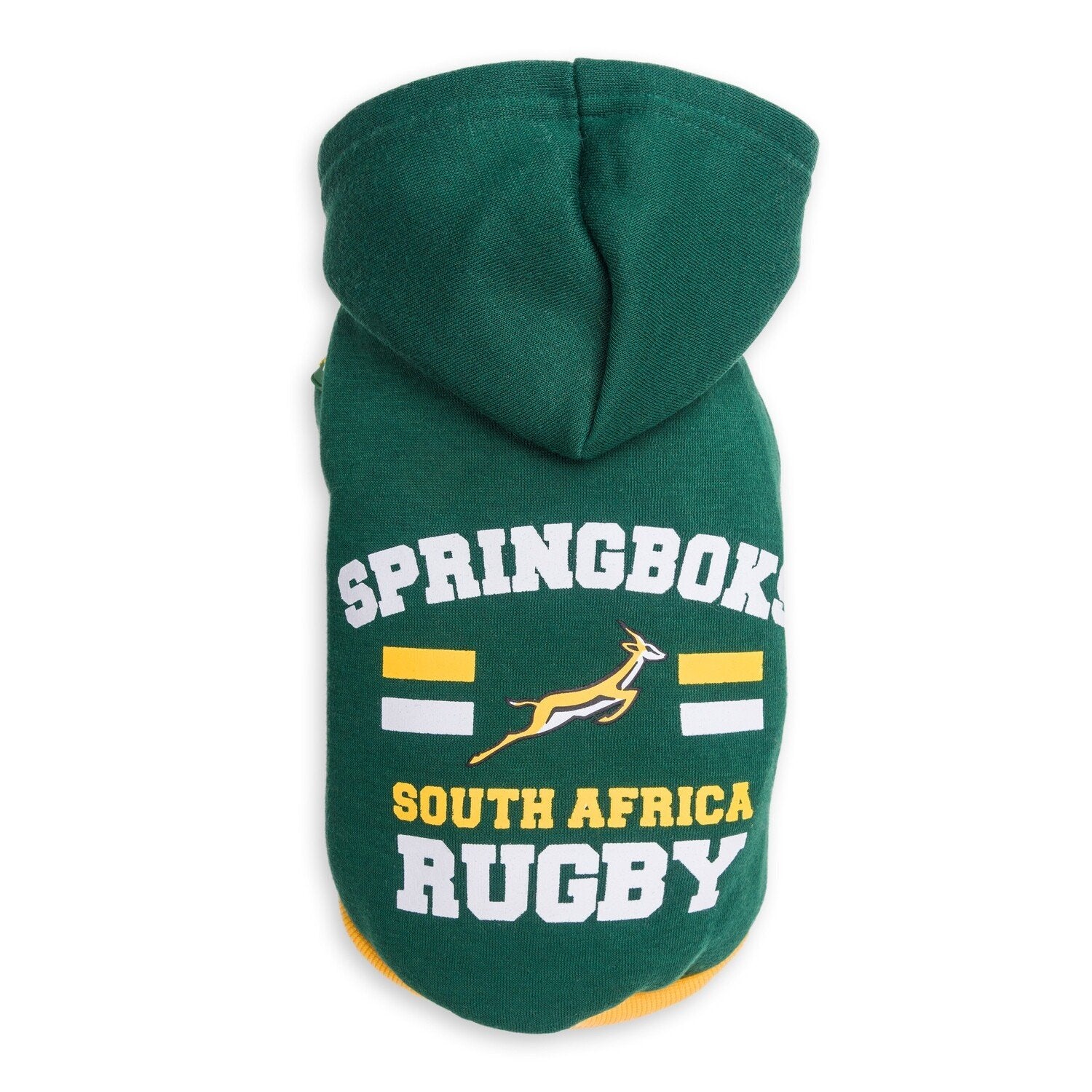 Support your teams and show your loyalty and passion with your brand-new Springboks Rugby Hoodie. This is exclusively designed in South Africa with the passionate doggo fans in mind. It is perfect for a passionate fan, where you can wear it for a game night or for any occasion. If you’re a fan of rugby, be sure to show your love off loud and proud with this striking Springboks rugby winter hoodie for doggos this season! Feel amazing in these winter heavy weight brushed fleece sporty hoodie. It features the Springboks logo screenprint, and a trademark Springboks PVC badge on the sleeve just adds to the overall authenticity of the piece. With two rows of press studs design and the comfy stretch, these stylish winter hoodies are designed for doggos to be able to be active in or lounge in everyday.