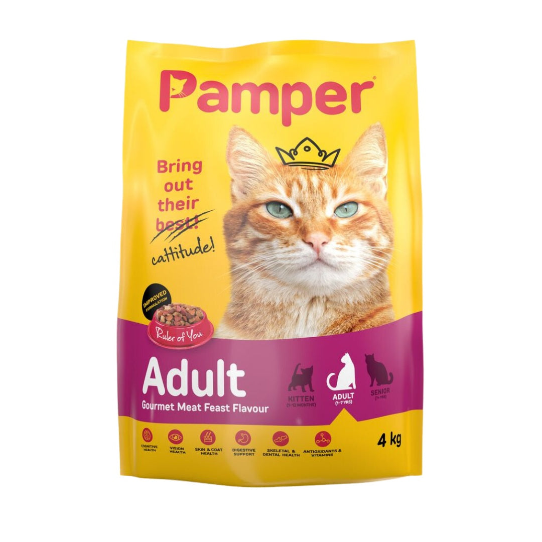 Give your kitten the best start in life with Pamper kitten food. Specially formulated to meet the unique nutritional needs of growing kittens, Pamper kitten food is rich in protein, vitamins, and minerals essential for healthy growth and development. Whether you choose dry or wet options, Pamper kitten food supports strong bones, healthy teeth, and overall vitality, ensuring your kitten grows into a happy and healthy adult cat.