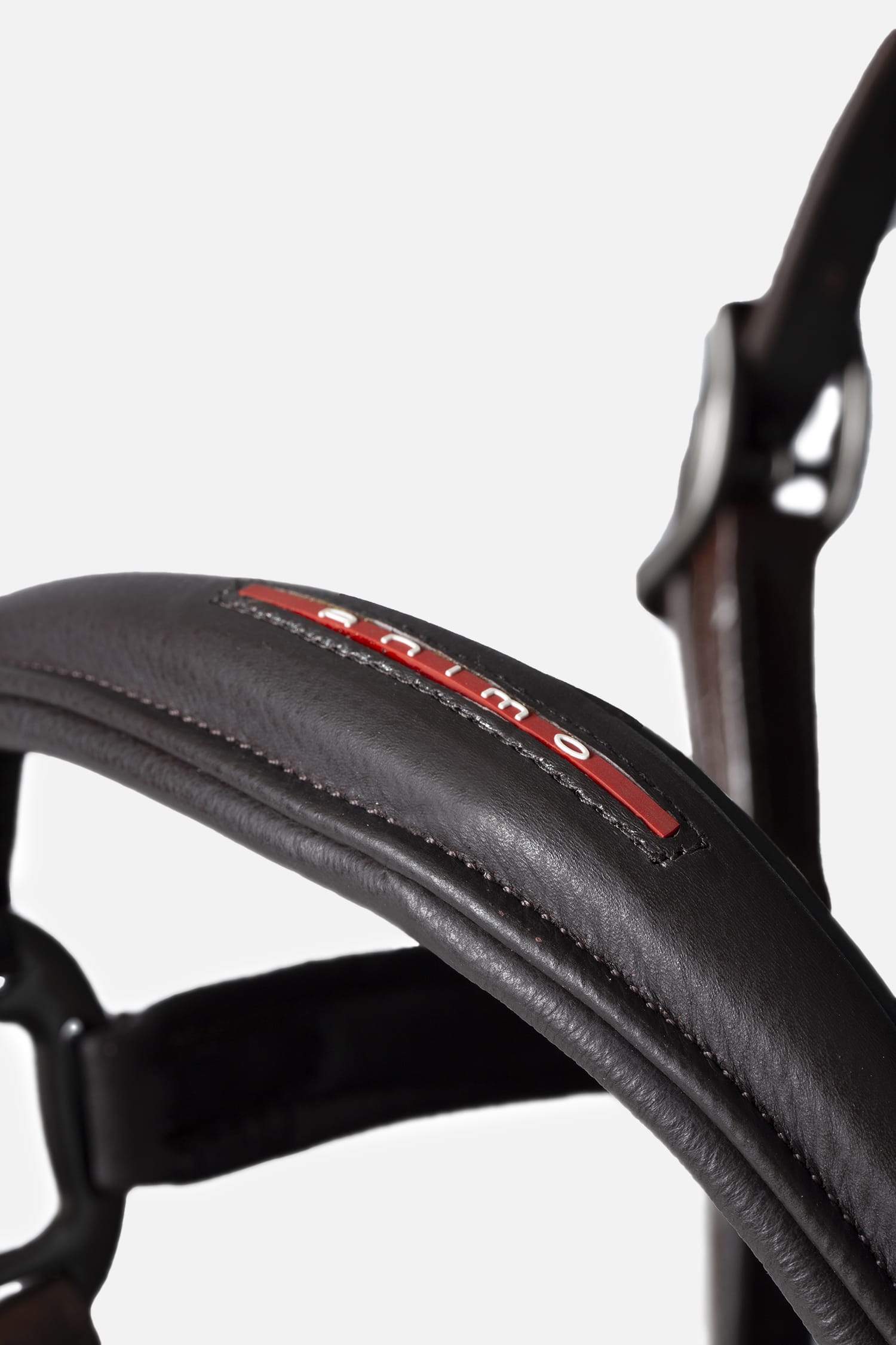 Handcrafted halter in leather with technical fabric details. Loops and rings in gunmetal colour. Animo logo applied to the center of the nose piece. fabric LEATHER