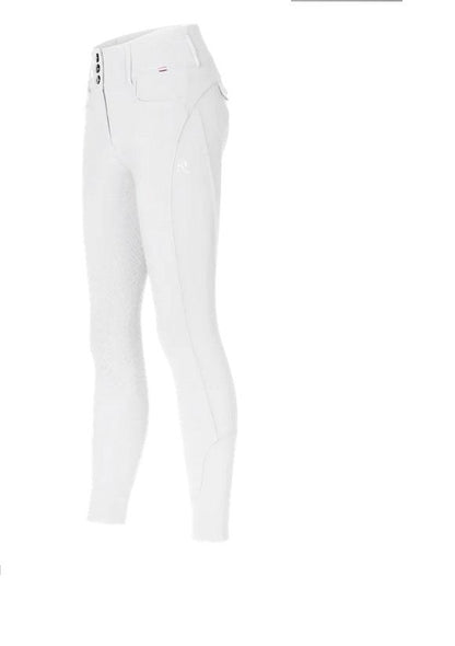 Our A-shape full-grip breeches blend performance with an elegant sparkle to ensure you feel confident and secure in the saddle. The A-shape construction caters to riders with narrow upper bodies and broader hips, creating a flattering silhouette. An elegant KL logo, embellished with crystals from Swarovski®, adorns the left leg, adding a touch of elegance to our high-performance breeches.