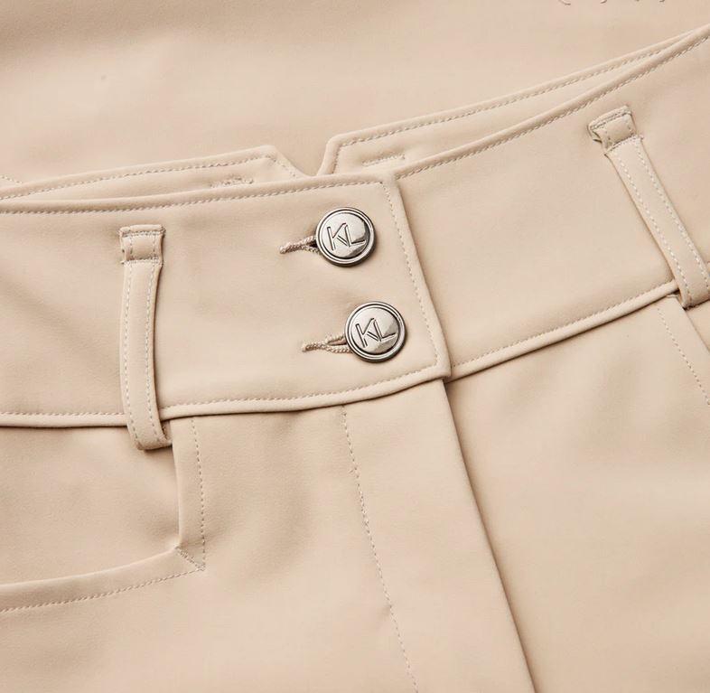 Our H-shape full grip breeches offer support and comfort in the saddle. Crafted from breathable yet robust fabric, they deliver excellent compression and a high-density structure for enhanced durability. Their H-shape design creates a sleek silhouette, perfect for riders with a narrow upper body and hips, delivering a tailored fit. The breeches are boosted by a Tanatex® anti-dust and water-repellent treatment for extra protection and a hassle-free ride. An elegant KL logo detailing adorns the left leg and is embellished with crystals by Swarovski® for a touch of sparkly elegance. Tanatex® dust- and water-repellent treatment - H-Shape with regular rise and 2 buttons - Quick-dry - Double layer - Embellished with crystals from Swarovski® - 4-way stretch - Breathable - Compression - High-density structure - UV Protection