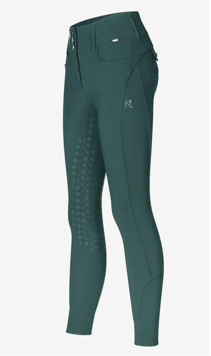 Elegantly and precisely crafted, our A-Shape Full-Grip riding trousers for women feature a Kingsland logo at the front adorned with Swarovski® crystals, offering a fitted cut, stylish design, and exceptional performance. Its A shape with 3 buttons and mid-rise waist ensures a perfect fit for riders with a narrow bust and wide hips, providing unparalleled comfort for high-level performance. The fabric enhanced by Tanatex® is dust and water-resistant, breathable, and has 4-way stretch, allowing for flexible movement in the saddle. The full grip ensures that riders maintain balance and stability effortlessly.