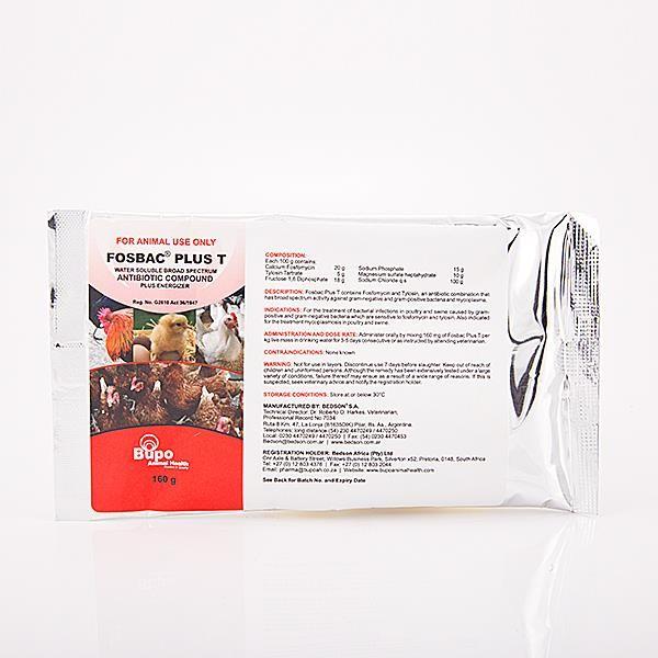 • Breeders: Use 160 mg FOSBAC Plus T (40 g Fosfomycin)/ kg body mass (approx. 400 g per 1000 chickens at KLW of 2.5kg) for 3-5 consecutive days in the drinking water.