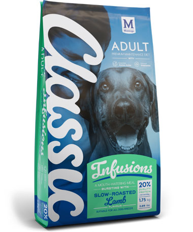 A mouth-watering meal bursting with slow-roasted lamb flavour Premium maintenance diet with essential amino acids and natural prebiotics. Ensure they always have fresh water available Water is essential to many bodily functions, including the regulation of body temperature, the transport of nutrients, and an aid to digestion. Provide lots of water, so your dog stays hydrated, especially during hot weather or physical activity. Serve them something delicious Eating is an essential part of a dog’s daily routine. Just like us, dogs are more excited to eat food they find tasty and enjoyable. Serve up Classic Adult Infusions for an unforgettable meal containing all the nutrition they need with an extra burst of delicious roast lamb flavour! Ensure they receive enough energy Dogs need energy to walk, run and play. It also helps them maintain body temperature, support the immune system, and repair and regenerate tissue. Classic Adult Infusions provides dogs with 365 kcal per 100 g, 20% Protein, 10% fat, and essential amino and fatty acids so they can live life to the fullest. Keep their joints and cartilage strong and flexible Glucosamine and chondroitin are natural ingredients that help support increased flexibility and mobility. They support new cartilage regeneration and help to prevent the deterioration of existing joint tissue. Look after their heart, brain, and muscles The natural dietary Taurine levels in Classic Adult Infusions support crucial physiological functions, including regulating heart contractions, improving the central nervous system, and maintaining healthy vision. Maintain the strength of their teeth and bones It goes without saying that dogs rely on strong teeth to adequately chew their food and strong, durable bones to enjoy an active lifestyle. Calcium aids in the development and maintenance of strong bones and teeth, helping to build the structural framework of the skeleton and keeping bones healthy. Keep their skin healthy and coat in good condition A dog with healthy, supple skin and a lustrous coat is a more comfortable, happier dog. With added omega-3 and omega-6 fatty acids, Classic Adult Infusions helps maintain coat condition and may assist in preventing skin allergies, dryness and excessive shedding. Provide them with a comfortable place to sleep and rest The average adult dog spends 50% of their life asleep. A comfortable, clean bed can assist dogs who suffer from arthritis, muscle dysplasia or joint discomfort. It also helps ease the ageing process.