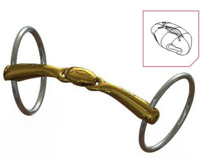 Anatomy-inspired double jointed bit design with enhanced mouthpiece stability, through optimised alignment of the mouthpiece surfaces to the tongue and palate. The Turtle Top™ link shape takes inspiration from the shell of the Box turtle. This flattened dome shaped link lowers palate pressure and prevents the cannons from being pushed upwards above the link by the horse’s tongue.
