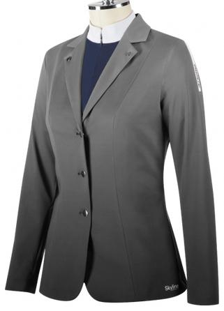 The competition jacket Lugo by Animo from the spring/summer collection 2022 has been specially designed for bad weather conditions at competitions and combines functionality with design. Due to the synthetic, lightweight and elastic material made of polyamide and elastane, this jacket is waterproof and excellent for rainy and wet tournament days. On the inside a mesh material is processed, thus a heat accumulation is avoided and the jacket remains breathable. In addition, moisture is transported to the outside for the best possible wearing comfort. Clever is the push button on the collar, which can be set up with it and thus remains up to protect the neck from moisture in the rain. The waist is nicely accentuated by the incorporated elastic band on the back. On the left upper arm to the shoulder was the Animo logo. The jacket is closed by 3 snap buttons, which are additionally secured from coming undone by an underlying zipper. The beautiful skyline color gradient is the highlight of this jacket, so it remains a real eye-catcher even in bad weather.