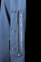 The competition jacket Lugo by Animo from the spring/summer collection 2022 has been specially designed for bad weather conditions at competitions and combines functionality with design. Due to the synthetic, lightweight and elastic material made of polyamide and elastane, this jacket is waterproof and excellent for rainy and wet tournament days. On the inside a mesh material is processed, thus a heat accumulation is avoided and the jacket remains breathable. In addition, moisture is transported to the outside for the best possible wearing comfort. Clever is the push button on the collar, which can be set up with it and thus remains up to protect the neck from moisture in the rain. The waist is nicely accentuated by the incorporated elastic band on the back. On the left upper arm to the shoulder was the Animo logo. The jacket is closed by 3 snap buttons, which are additionally secured from coming undone by an underlying zipper. The beautiful skyline color gradient is the highlight of this jacket, so it remains a real eye-catcher even in bad weather.