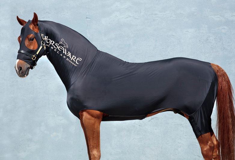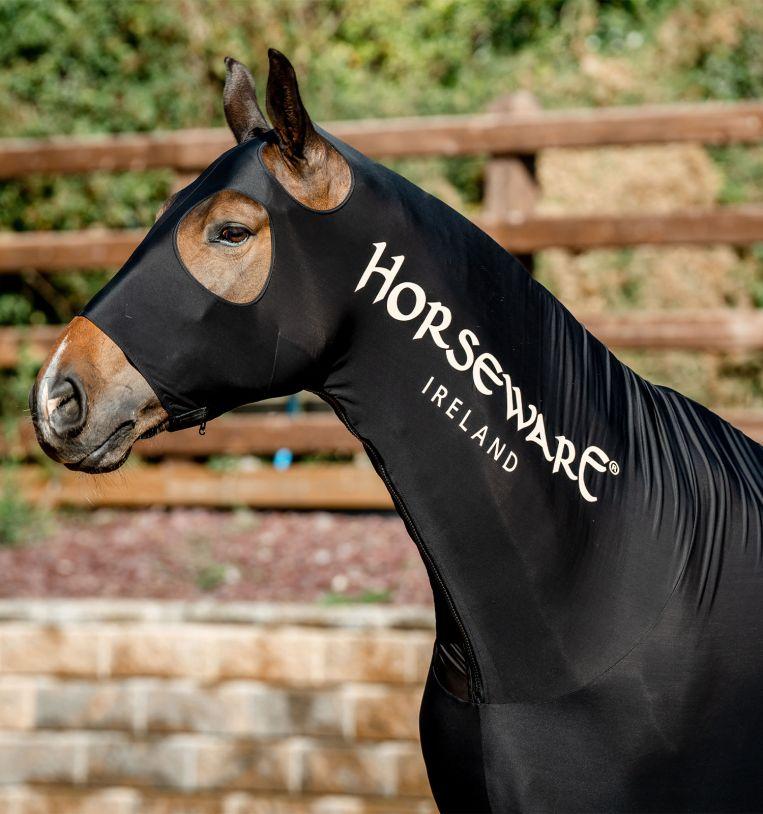 Treated with an anti-static infusion, the fabric hugs your horse with dual front and back leg arches, further complementing the Lycra rug's design and quest to offer total freedom of movement. This full-body Slinky rug also protects your horse from dirt, dust and debris embedding into your horse's coat and mane with face, neck, belly, and upper hind leg coverage. This practical horse Lycra body is finished with an attractive Horseware® Ireland screen print logo in cream emblazoned along the neck.