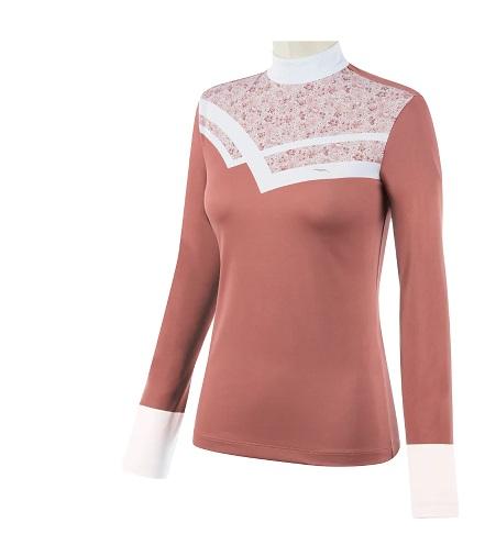 The upper part of this shirt has a beautiful elegant floral print complemented by small blue crystals.