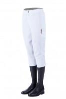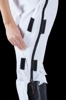 Animo's rain breeches Mogol from the spring/summer 2022 collection are specially designed for the wet and cool days of the year. Due to the material components of polyamide and polyurethane, these overpants are waterproof and dirt-repellent. The elastane content ensures that the rain riding pants remain elastic at the same time. The rain pants can be easily and quickly, pulled over the normal breeches when it starts to rain, without having to change completely. For quick and easy pulling over, a wide elastic waistband has been added. Most importantly, the zipper on both legs, which can be opened from the knee up to the waistband, makes it easier to put on. The zipper is hidden under the same waterproof fabric of the breeches, this is covered with Velcro and held on the leg. At each leg cuffs is also a Velcro strap to prevent the pant leg from sliding up. Thus, the legs with this waterproof overtrousers always stay dry when riding.