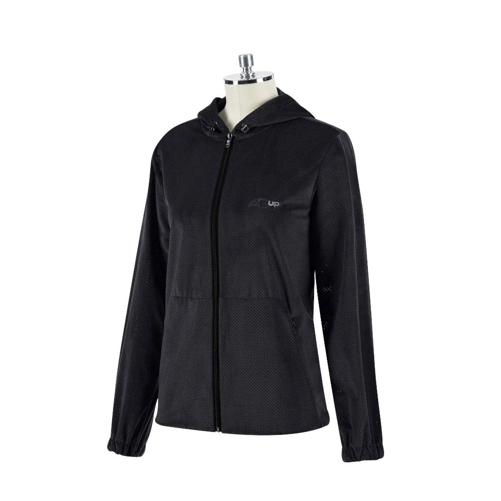 Anna Scarparti Women's Sweatshirt Lerox SS23 spring/summer collection 2023 is made of shiny cuddly velvet with anti-pilling effect the velvet is perforated and therefore super air-permeable offers a high wearing comfort at summer temperatures the hood with adjustable cords can be fixed with a snap fastener the large pockets can be closed with a zipper, so that nothing gets lost this summer velvet jacket can be combined well with any breeches or jeans Material 100 % polyester Care instructions machine washable at 30 °C in gentle cycle do not use fabric softener or bleach do not tumble dry