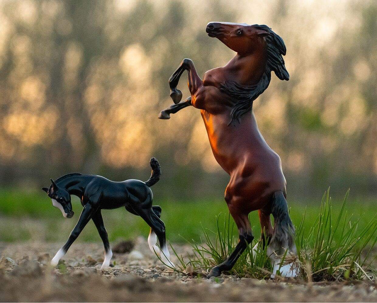 This lovely horse and foal set features a proud stallion poised to protect his family, and his spirited young foal. Perfect for play or collecting!