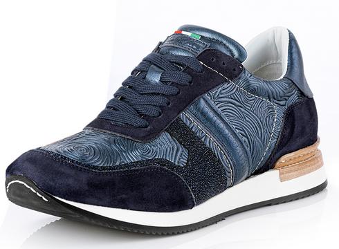 This Particular DeNiro trainer features Roseto Blue middle panels, with Suede Blue Heel and Toe, Stardust Blue and Sinax Avio trims. All trainers come with Vice Versa soles that aid comfort and posture.