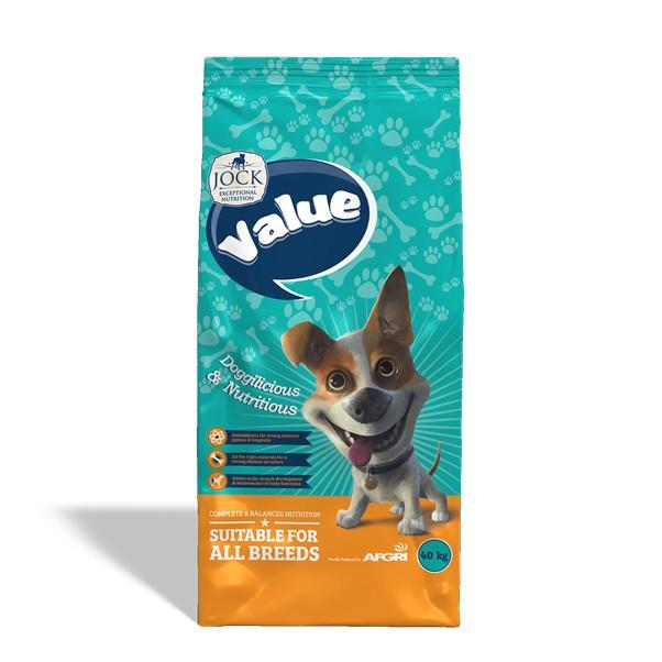 The role that nutrition plays in keeping your dog healthy is absolutely critical. JOCK Value is specially formulated to completely address these needs and keep your pooch a few steps ahead of the rest. The secret lies in our protein-rich formulation, which is loaded with the 10 essential amino acids. These key nutrients are vital for your dog’s health and help maintain and build muscle strength. JOCK Value is also a rich source of antioxidants, thanks to added vitamin C and E. These powerful elements, along with a combination of essential minerals, help limit the damaging effects of free radicals in your dog’s body and help support overall health. Add to this our carefully selected premium ingredients and you have a dog food that is as delicious as it is nutritionally sound.