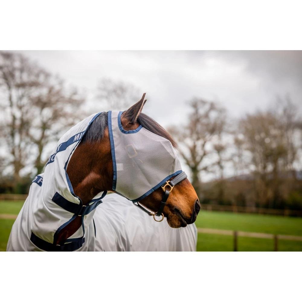 This mask shades the horse's head from harmful UV rays and prevents flies from irritating the eyes.