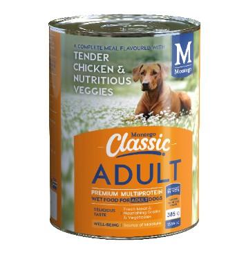 Classic Puppy wet food available in 385g tins. Classic Adult wet food available in 385g and 775g tins.