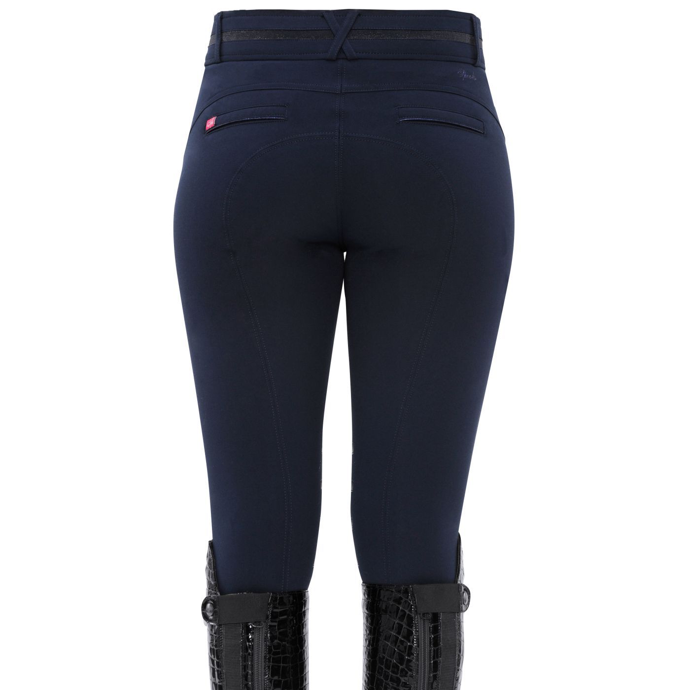 Very comfortable and elegant breeches with crown-grip and elastic leg cuffs. The two closable pockets on the front and the waistband are decorated with glitter. On the back of the breeches are sweet details such as a glitter decoration, a SPOOKS writing and a SPOOKS logo patch. The slightly higher waistband leaves room for any kind of belt and fits perfectly.