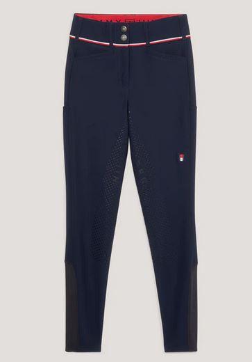 The Geneva Breeches are designed in a technical power stretch water repellant performance fabric with a higher and wider waistband for maximum riding comfort. Soft jersey hem for a sporty shape and a thinner layer under your boots. Features an embroidered logo on the left thigh, Global Stripe tape at waistband, 'Hilfiger' embroidery on front pocket, and full silicone seat for a secure grip in the saddle. Fantastic performance fabric with multiple functions including quick drying, wicking properties, UV protection and 4-way power stretch.