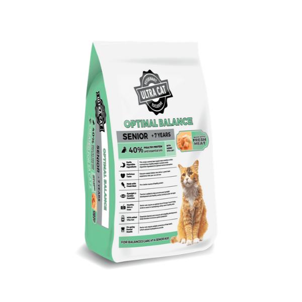 For balanced care at a senior age, nutritional needs begin to change as your cat grows older and, with this in mind, we have developed a food with the optimal balance of high-quality ingredients, including fresh meat, for a better, healthier protein source. Ultra Pet Senior Optimal Balance food is a complete and nutritionally balanced diet that has been scientifically developed by our veterinarian and animal nutritionist.